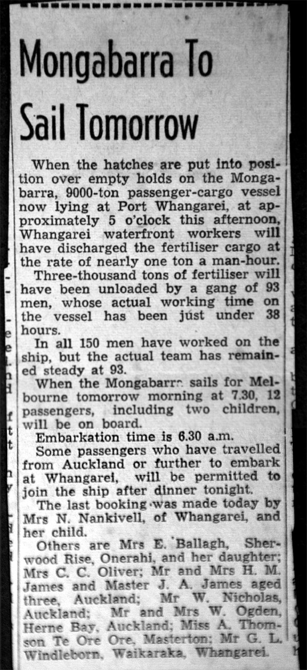 the Mongabarra to sink, which she did on May 22, 1960.? A sad end indeed, although scuba divers love