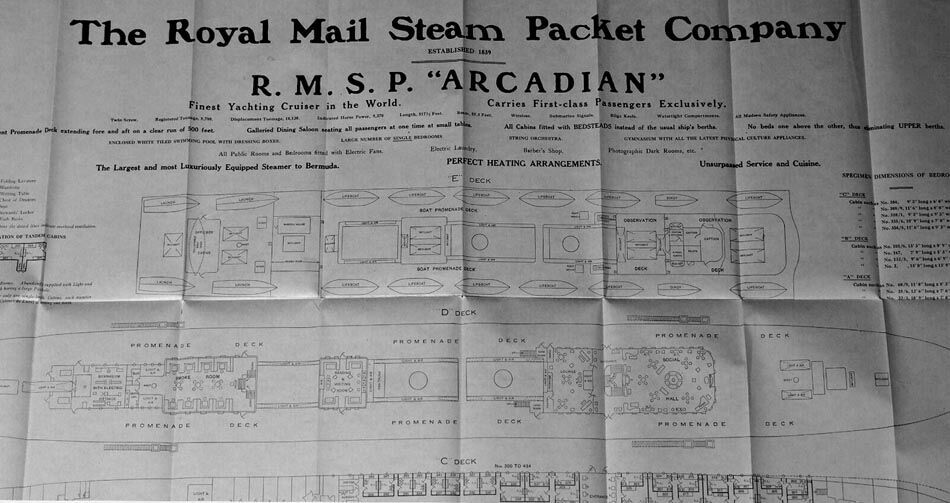 Please Note: If you have arrived at this page via a search engine looking for the R.M.S. Ortona or the R.M.S.P. Arcadian then you have arrived at the features second page, which does not have her history nor all her countless photographs, Thus I suggest that you click and visit Page One first! Page One contains her full history in both her guises, as the R.M.S. Ortona and the R.M.S.P. Arcadian, complete with her external and interior photographs as well as her complete ‘Specifications and Details’.