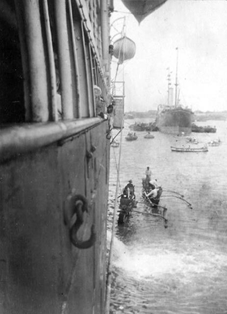 A patrol boat did its best to help the swimmers. The submarine unsuccessfully fired two torpedoes at the patrol boat while it was engaged in rescue work. The men of the patrol boat performed a fine feat in launching here lifeboats while going at full speed.