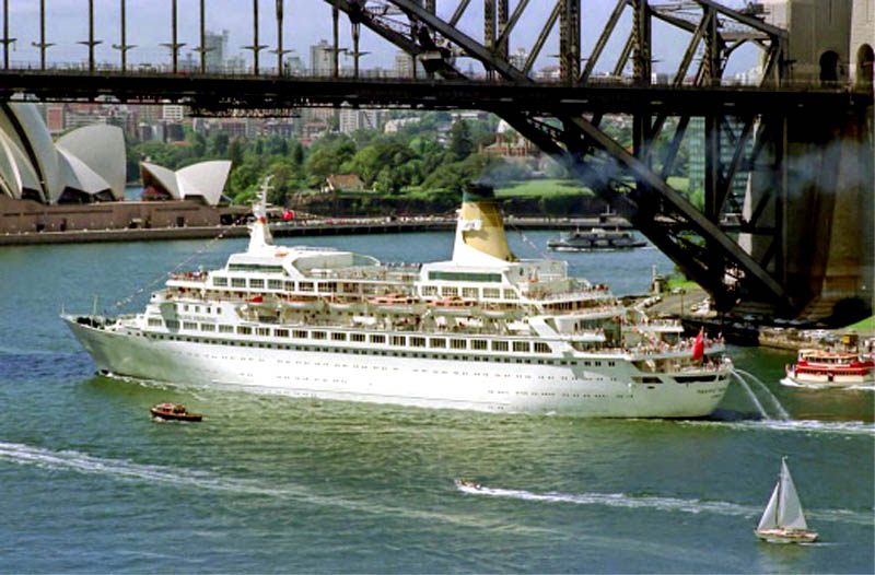 However, In October 1974 she was sold to the British P&O Line. But delivery would be in April 1975. When she was taken over by P&O she received the traditional buff/slightly yellowish funnel, with the P&O logo on her funnel, but her hat was strange being a dark blue, whilst other P&O ship had black hats. She was renamed Pacific Princess and she commenced cruising from American ports as well as during the Australian summer months in 1975 and 1976.
