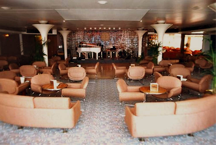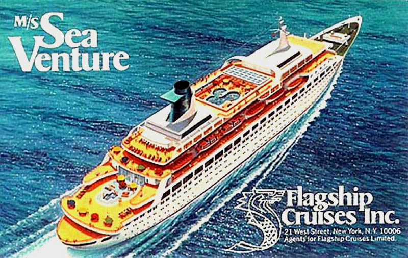 The M/S Sea Venture featured a gold sea horse on the blue part of her funnel and looking simply sublime, she commenced her official cruise duties in June 1971
