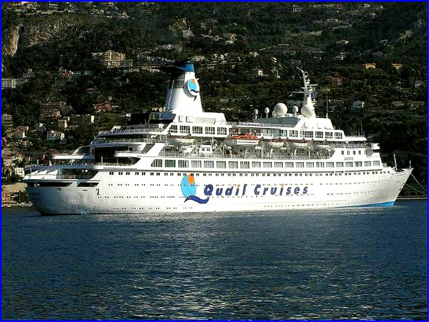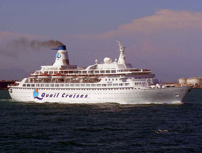This arrangement continued until she was sold in December 2007 to Templeton International Inc of Florida who had intended to charted the ship our and thus ensured that she had the repairs that were requited, which was quite extensive. It would be Quail Cruises who took over the Pacific and she received the Quail Cruises livery and she returned to her new cruise duties on March 8, 2008 operating one-week circle Mediterranean cruises. But this new cruise venture would sadly be one that ends this magnificent ships career some six months later!