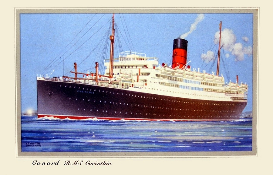 The Turbine Steam Ship Carinthia was Cunard White Star Line’s second ship to use this name, although the first SS Carinthia was a 5,598 GRT (Gross Registered Tons) Cunard Line freighter, which was in service from 1895 to 1900. However, this superb name would be used for two further greatly loved Passengers Liners, the first of these being completed in 1925 and the second in 1956.