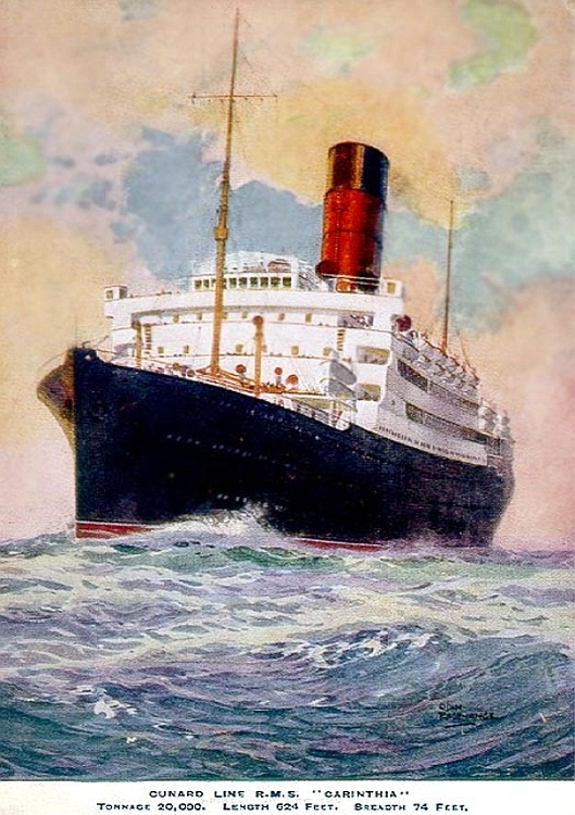 This postcard of the R.M.S. Carinthia II was released by Cunard-White-Star Line prior to her maiden voyage