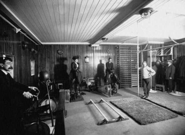RMS Carinthia was also well equipped for sunning and swimming during the summer days, , and ample space for sports, with an arena that covered 5,000 square feet (460 m2) over two decks, and there was also a spacious Swimming Pool. In addition, the ship offered a Gymnasium; Racket Courts and Massage treatments were available.