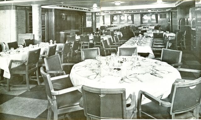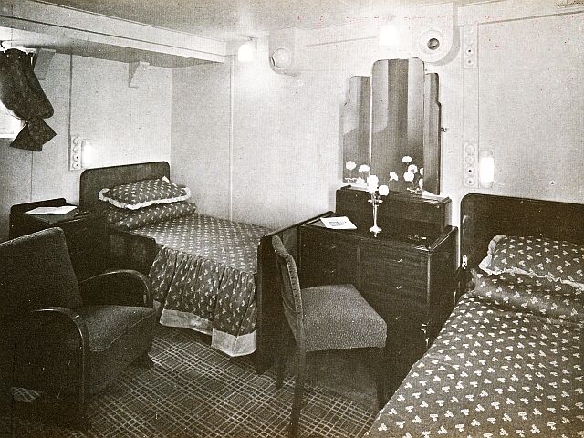 Brochure copy: “These two new liners are each of 13,350 tons with a length of 535 feet, with a breadth of 70 feet.”