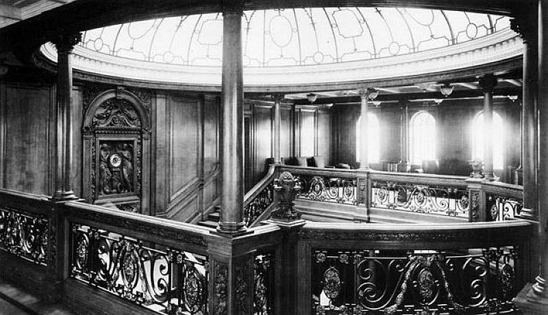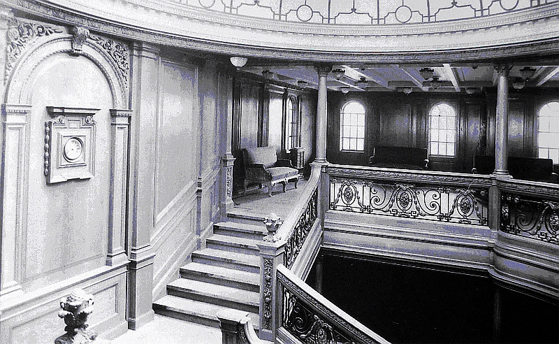 Here we see the Olympic’s Grand Staircase seen on Promenade Deck looking