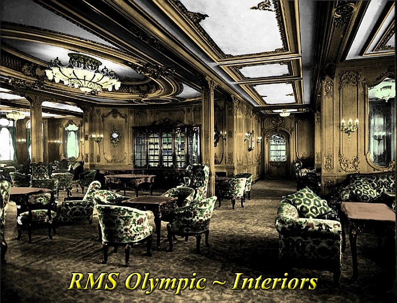 But it were the splendid First Class Lounges, Smoke Rooms, Libraries, relaxed and elegant Palm Courts and the fine and dignified Restaurants that the RMS Olympic was famed for during her excellent twenty four year service to White Star Line and Cunard Line in her final few years. She offered vast Promenade and Sport Deck spaces and she was blessed with a Gym, Turkish Bath and even an Indoor Swimming Pool.