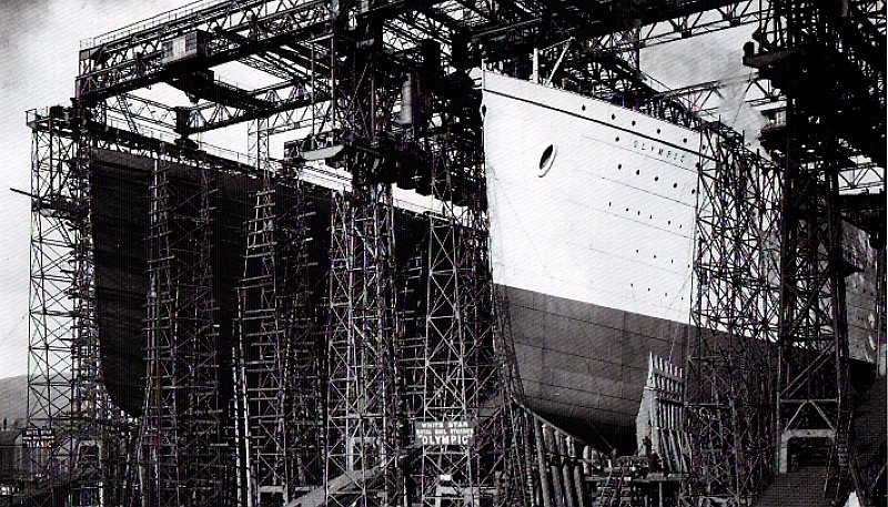The keel for the Olympic, Harland & Wolff Yard 400 was laid on December 16, 1908, whilst her identical sister the Titanic, was built alongside her, but she was several months behind the Olympic time wise., and she was built in Yard number 400, right next to her sister the Titanic in Yard number 401. We know that during the building of her hull that some three million rivets were used to complete the huge job.