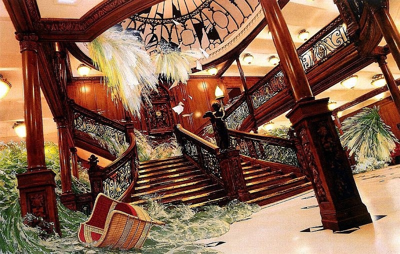 Once the First Class passengers had boarded the Oceanic they were met by the impressive Grand Staircase, which was sixteen feet wide and it provided access to five decks and was some 60 feet high. The ceiling was a massive glass dome that contained an elegant chandelier. Page Two has a number of photographs of this magnificent stairwell.
