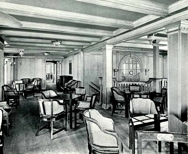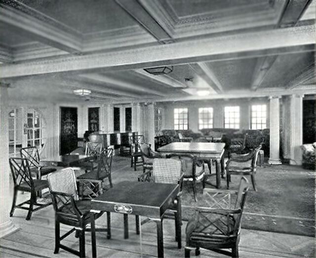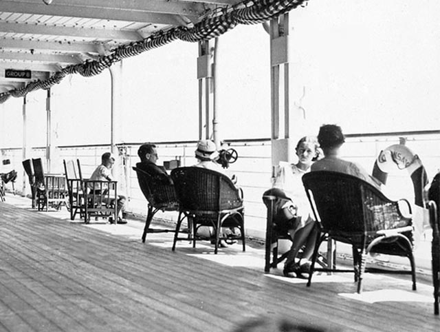 The Promenade Deck is a wide and a fully covered walk-around deck and the most popular deck space on board the ship, as it was well furnished for relaxation, especially whilst in the warmer climes.