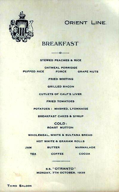 Breakfast Menu October 27, 1935
