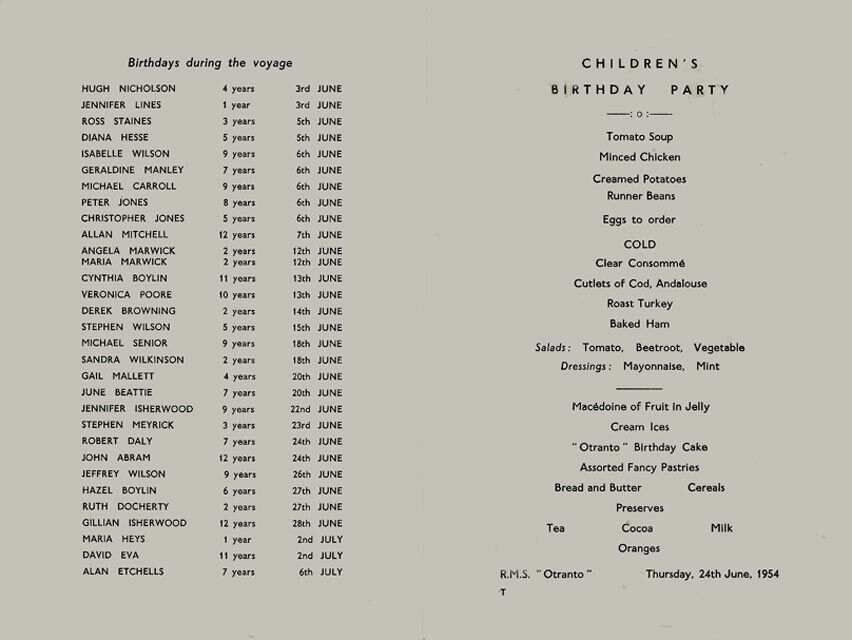 Interestingly on all her Menus she is always listed as the S.S. Otranto, rather than the R.M.S. (Royal Mail Ship). Only on the Children’s Birthday Menu do they have her with the R.M.S. prefix, very strange?