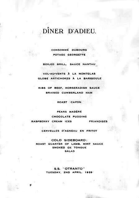 A Menu Diner D’Adieu April 2, 1929