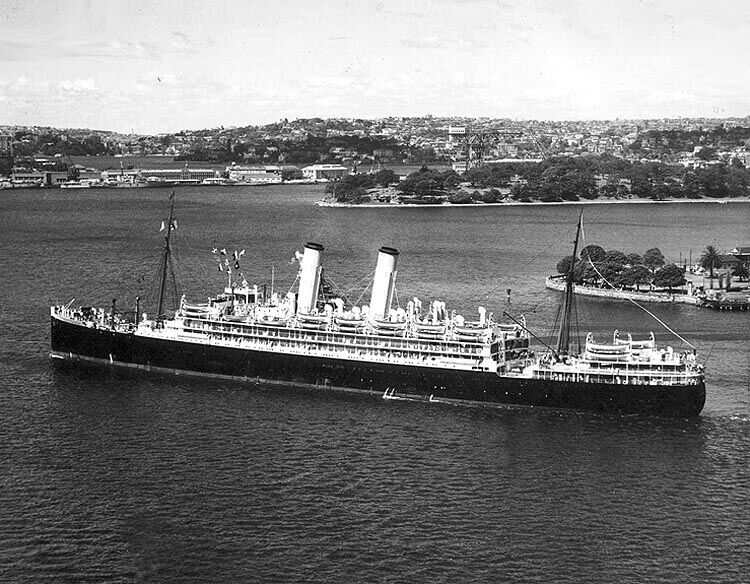 R.M.S. Otranto is seen at Tilbury