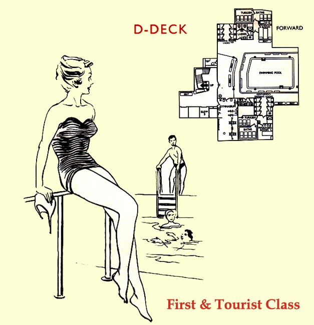 The First Class Indoor Pool is available to Tourist Class during inclement weather at advertised times