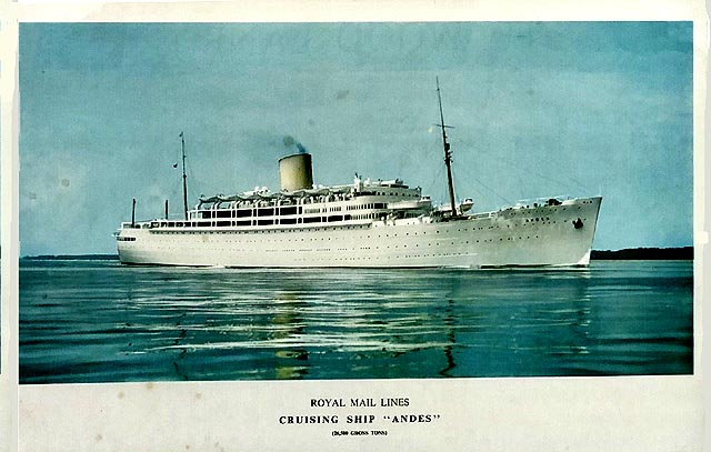 Of course most will remember the R.M.S. Andes of 1939, which entered straight into WW2, and she was a troopship from 1939-1945. The then operated as a liner with a black hull and it was only in 1959, she was converted to a luxury all white cruise ship without any cargo whatsoever and she sailed unto 1971.