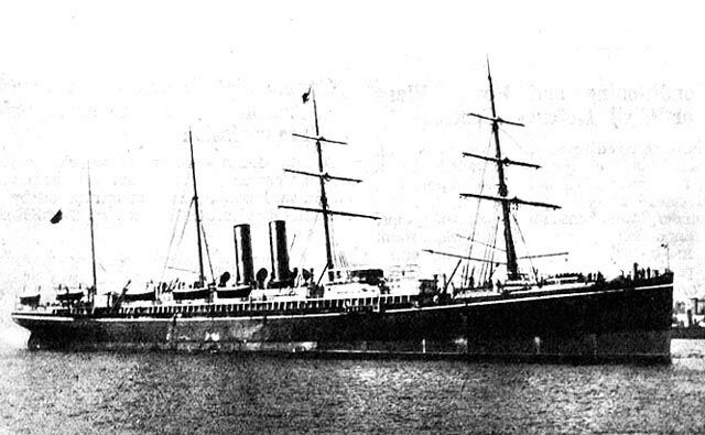 The S.S. Arcadia seen during her speed trails, note her still unpainted funnel top.