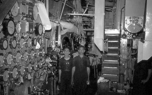 She was powered as follows; the main engines installed were two sets of Parsons double reduction geared turbines, 42,500 SHP, and there were three Foster Wheeler controlled super-heat boilers of 600 psi.