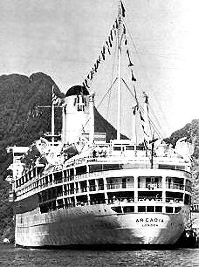 The S.S. Arcadia was fully dressed overall and she had her 25-ft paying-off pennant flying ever so proudly from her mast!
