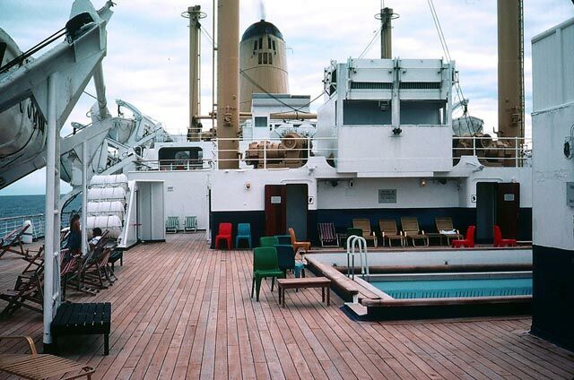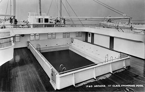 Directly aft of the Pool Café was the pool, which was surrounded and sheltered by male and female changing rooms and an attendant room.