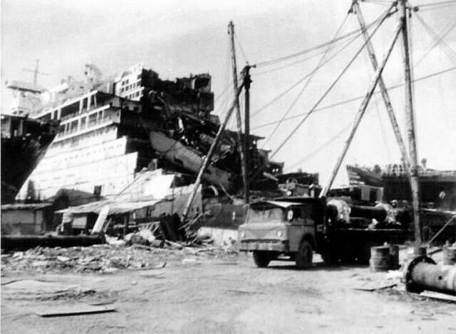 S.S. Arcadia is looking rather sad, for she is seen here at the breakers yard