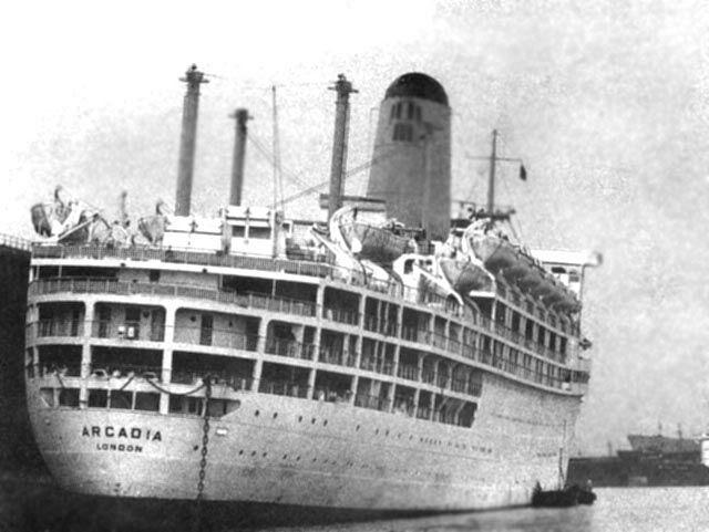 S.S. Arcadia is seen going through Sydney Heads but at an earlier time