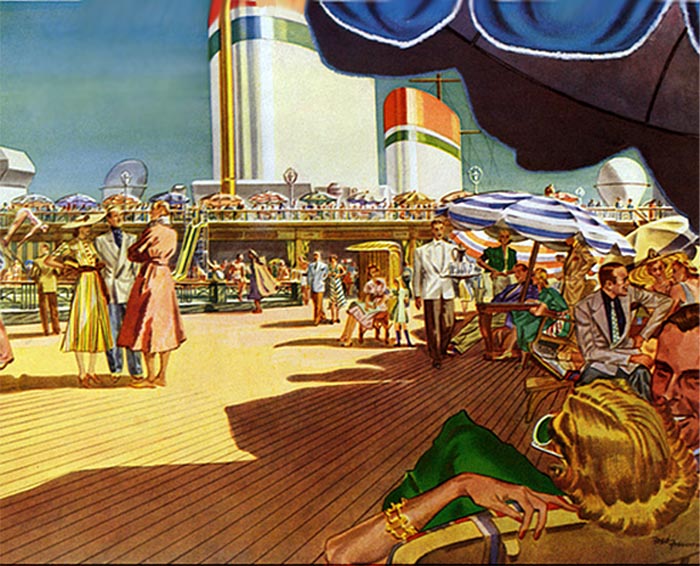Yet there were also a good number of similarities that gave them a look of similarity; however they were remained very different ships to the end. In addition the Conte Di Savoia was the first liner to be fitted with a triple “Sperry Gyroscopic Stabilizing” plant, assisting her in reducing the ship rolling during bad weather whilst on Atlantic crossings!