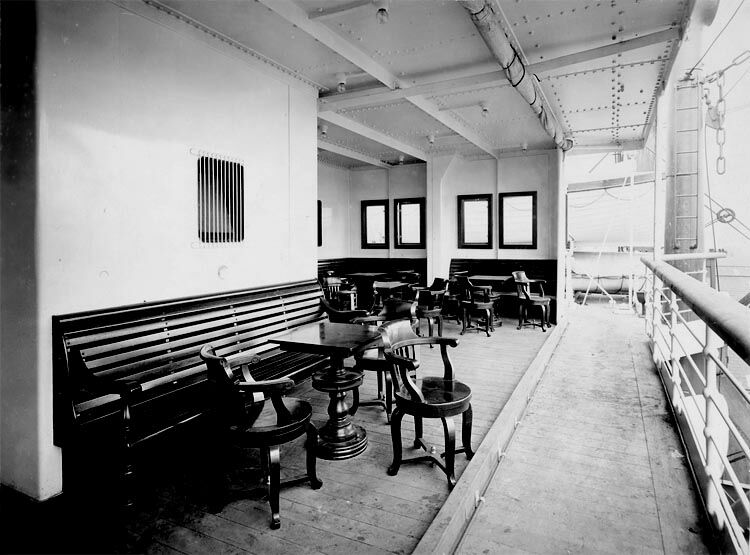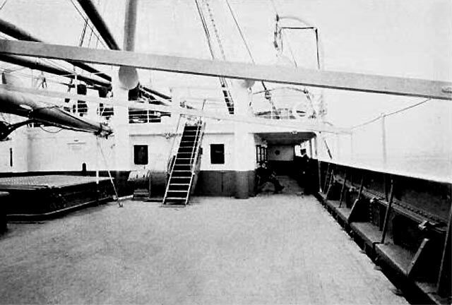 First class facilities were located on the following decks; Bridge Deck, Boat Deck, Main Deck and Awning Deck. Whilst Third Cass was on located the Poop and T’ween Decks. The space for the 750 Steerage passengers would most likely have been in two converted holds, which was done in a good number of ships in those days, for I could not located any other permanent accommodation on board.