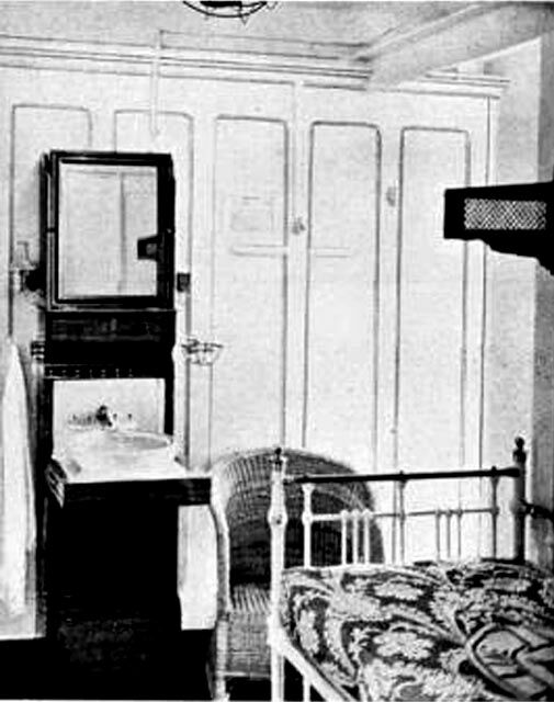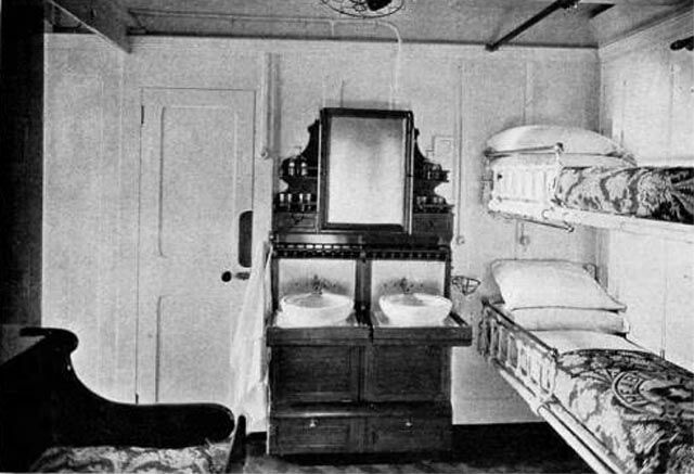 I will commence with the First Class Venues and Cabins, then the Third Class, but sadly there is nothing available on the Steerage accommodations, which is usually very basic located in the bow section and sleeping venues was located in large dormitories, which was often in converted holds, for steerage would only be carried when requested and was not a regular transport for the ship.