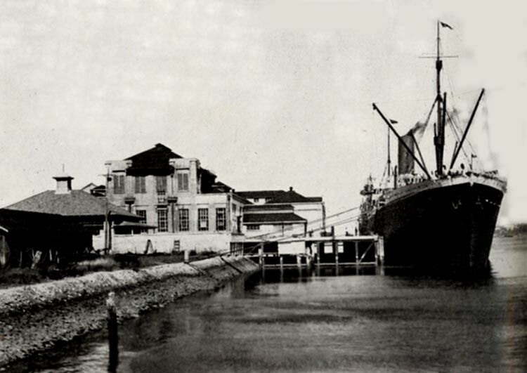 The R.M.S. Akaroa is about to dock at Hamilton Wharf Brisbane, Queensland, Australia