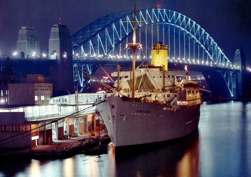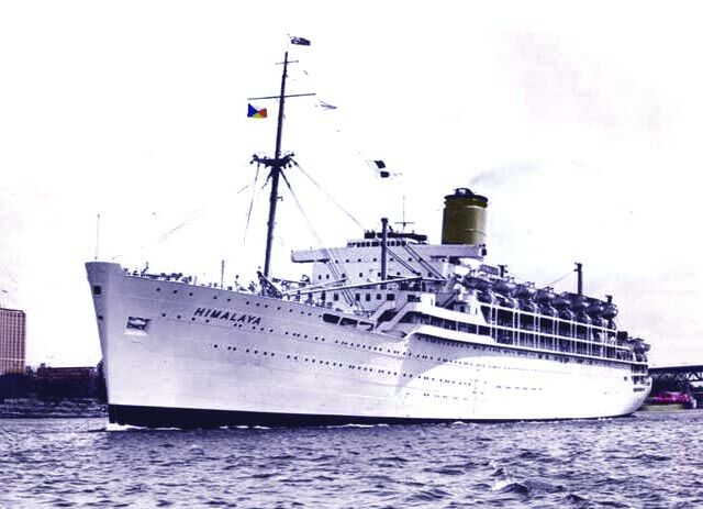 S.S. Himalaya is seen in the evening at the ‘Overseas