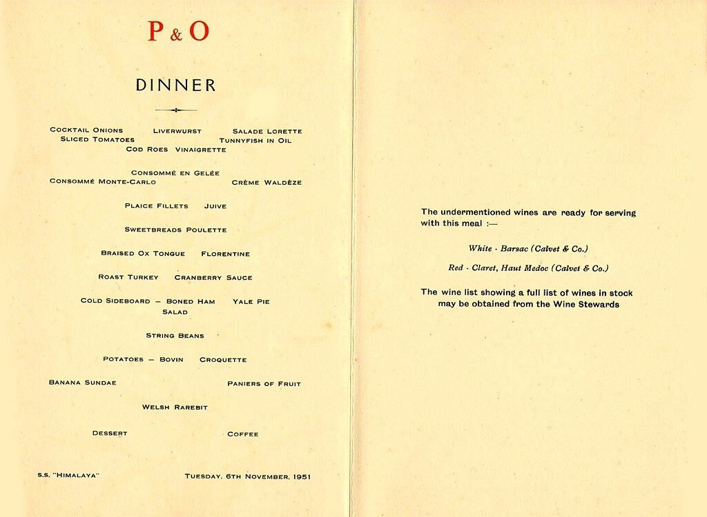 This feature covering the S.S. Himalaya (3) is a Two Page feature, and Page One page covered her entire history as well as a tour of her interiors and exteriors. Whilst this page, Page Two contains her Deck Plans, First Class and Tourist class and later in the 1960’s she became a Tourist, all One Class ship. Then there are a range of her Breakfast, Lunch and Dinner Menus, which is followed by a wide range of Souvenirs & items of Memorabilia.