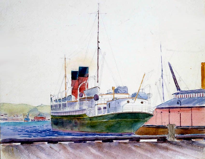 delightful watercolour by Arthur-Hayden with a stern view of S.S. Maori seen