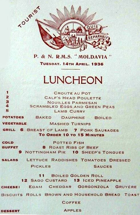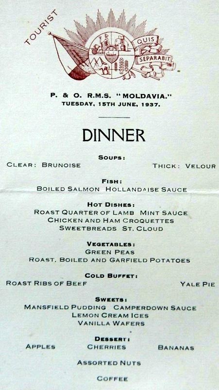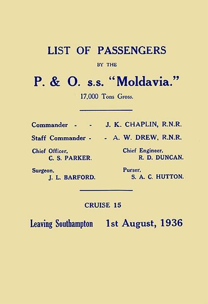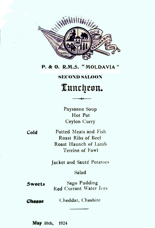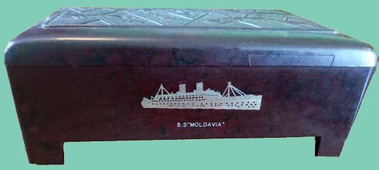 I have a number of items directly related to the S.S. Moldavia such as Menus and items of memorabilia purchased on board from the ship or received as prizes, etc.