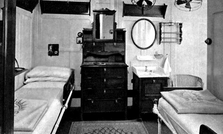 Passenger cabins were arranged according to the “the Inchcape plan”, meaning that every single cabin aboard had a porthole, providing ample light and fresh air.
