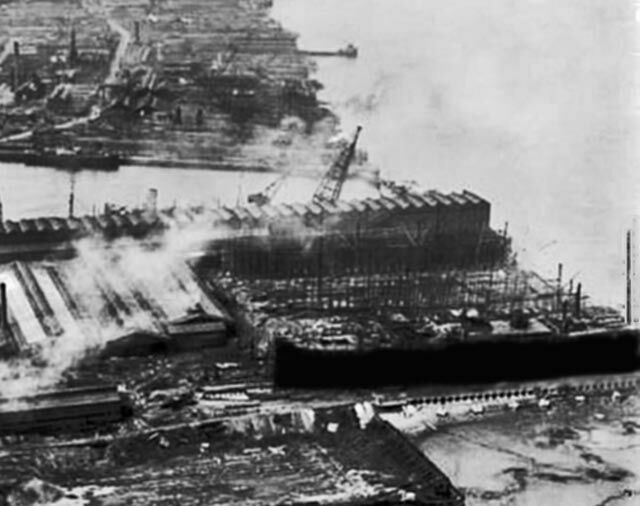 October 1, 1921, and as she finally entered the water tugs took her under tow