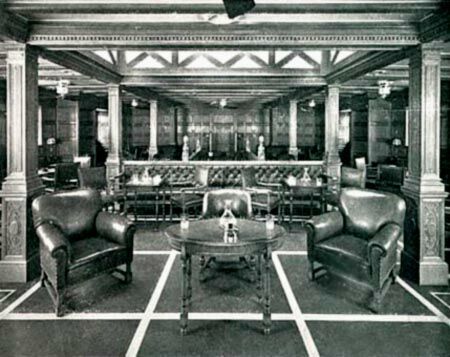 This delightful venue was decorated in a sumptuous mahogany timber along on the walls, as well as along the four long ceiling panel’s side’s centre and those four pillars in the centre of the room, not to forget the delightful furnishings of course. The sofas and some lounge chairs were deep and soft as well as elegantly upholstered in the finest brocades. On top of the flooring, there were genuine Persian rugs on the floor. This Lounge certainly was impressive!