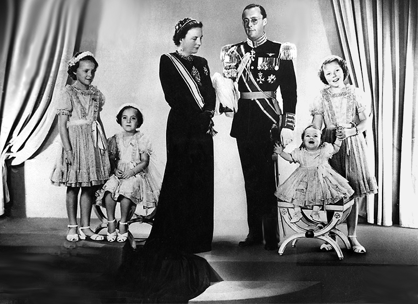 HRH Queen Juliana’s family portrait seen with husband Prince Bernhard and are seen with their four children