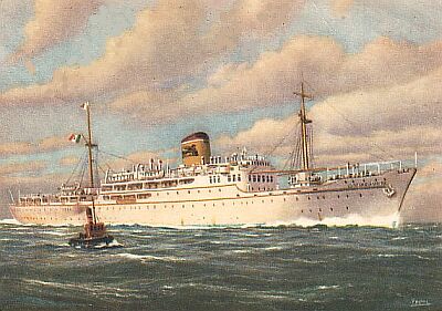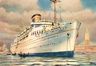 First Class public rooms occupied all of Promenade Deck. Lounges exuded an Italian flair, which gave all public spaces on board a sense of light and space. First Class offered both single and two berth cabins, all having private facilities. Second Class public rooms were located one deck lower, located amidships to just aft. Cabins accommodated 2, 3 or 4 berths, all with shared facilities. Tourist Class public rooms were located right aft and offered either 4 or 6 berth cabins, again all having shared facilities.