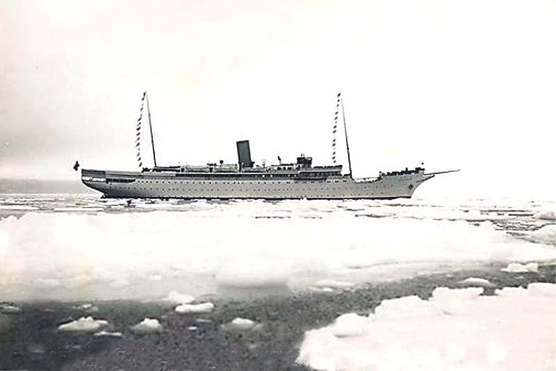 M.Y Stella Polaris is seen as built on August 6, 1930 and is surrounded by ice packs