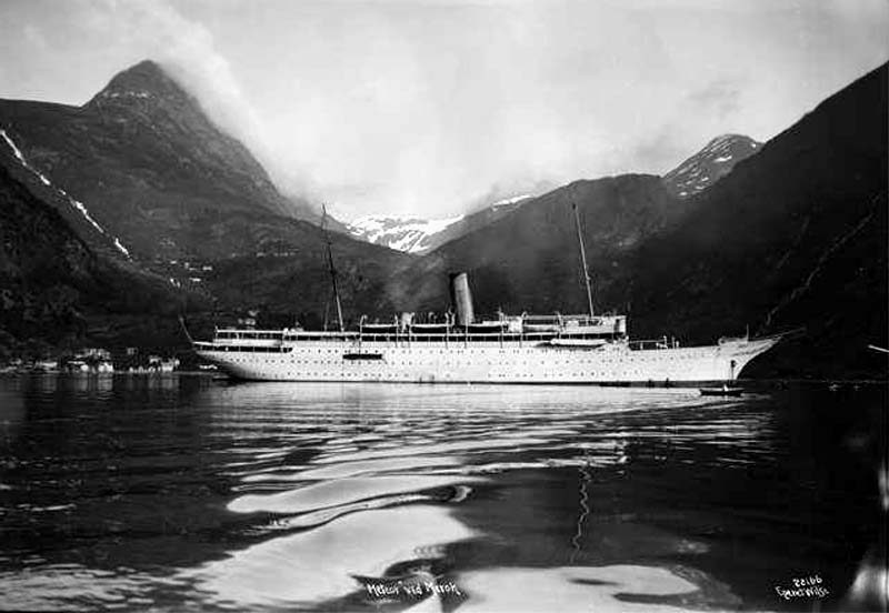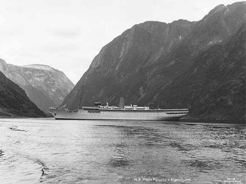 A postcard of the Stella Polaris seen cruising the Norwegian Fjords in the 1930s