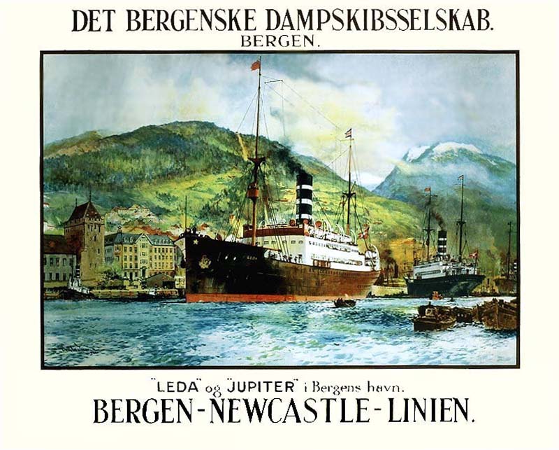 BDS ships to date had only sailed the Norwegian coastal service as well the Norway to Germany service, however the new UK service was instigated when on June 14, 1888 the Norwegian Government agreed to support a new weekly passenger and cargo service from Bergen via Trondheim to Newcastle UK.