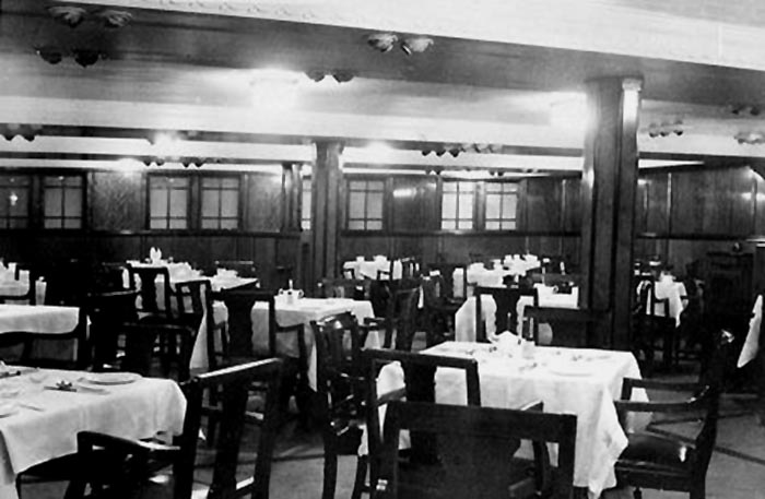 Second Class Smoking Room and Dining Room were very similar to the First Class rooms, and were attractive venues but both were finished in a Bird’s-eye Maple panelling that was very pleasant indeed!