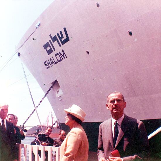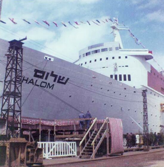 Upon completion the Shalom was launched on November 10, 1962, and was placed at her fitting out berth where she was named and dedicated by the wife of David Ben Gurion, Mrs Paula ben Gurion.