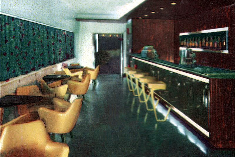 The MS Augustus, like her sister had two 12 cylinder “FIAT” Diesel Engines, each of which had been built years earlier by “FIAT” but had been lying idle and it was reported that they were the largest of the “FIAT” type ever constructed. Each providing a service good 13,000 Horse Power (BHP), which drove her twin screws at a service speed of 21 knots. Both ships were designed to sail on the Italy-South America route, operating with three classes. Her interior was designed to have full air conditioning and as the Italia Line stated in 1954 about their new sister ships; “Our new ships have a lung of their own, hence they actually may be said to breathe. A complex system consisting of no less than forty units provides air-conditioning and this creates as it were a climatic zone of its own. Further more, a number of extractors secure a complete change of air 10/12 times an hour.” I have an Italia Line brochure that uses almost same quote in it, with a slight difference here and there.