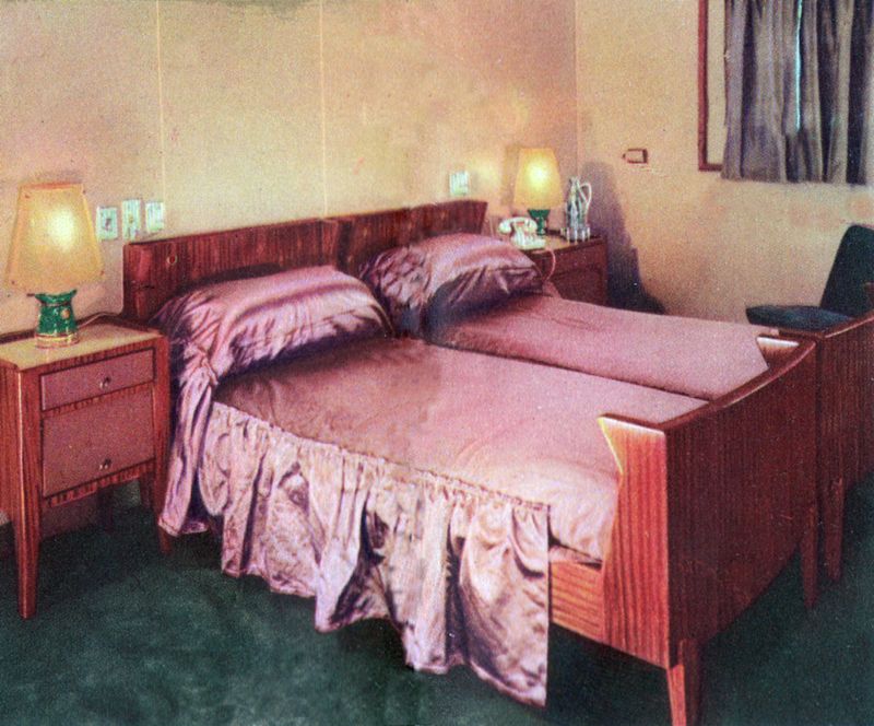 Cabin (second) Class offered from single, two bed to four berth cabins. All had private facilities as well as a telephone, and remember phones in cabins were rather new on board ships and a novelty in those days.