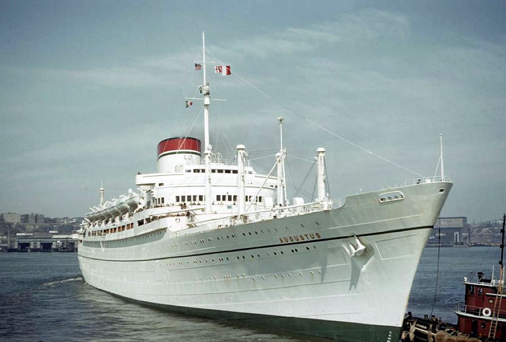 Although the MS Augustus was slightly larger than her sister at 27,090 GRT (Gross Registered Tons), she had been built by one of the great Italian ship builders - Cantieri Riuniti dell’ Adriatico, at the San Marco shipyard located near Trieste, Italy in 1950 and she was officially named and launched on November 19 that year, by Mrs. Francesca De Gasperi, who was the wife of the Italian Prime Minister Mr. Alcide De Gasperi.