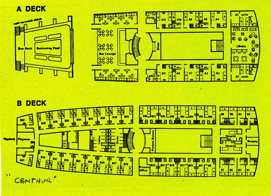 delightful photo of the MS Centaur taken from the air, which reveals her ample
