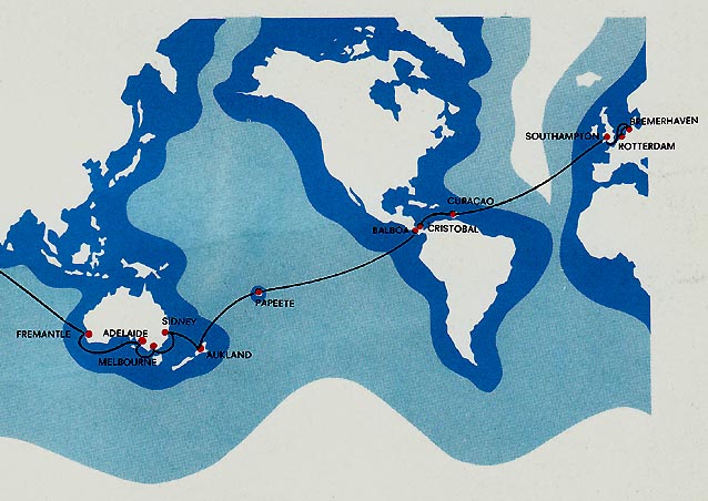 The Flavia sailed via Bremerhaven Germany, Tilbury (London) UK, Willemstad Curacao, then to Cristobal and through the Panama Canal to Balboa and then across the wonderful Pacific to Papeete in Tahiti before reaching Auckland New Zealand, but we were booked to head via Sydney to Melbourne.